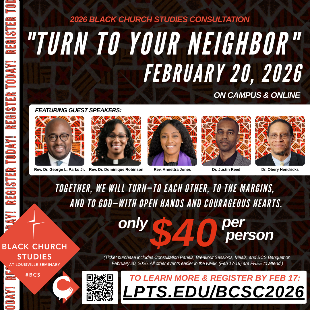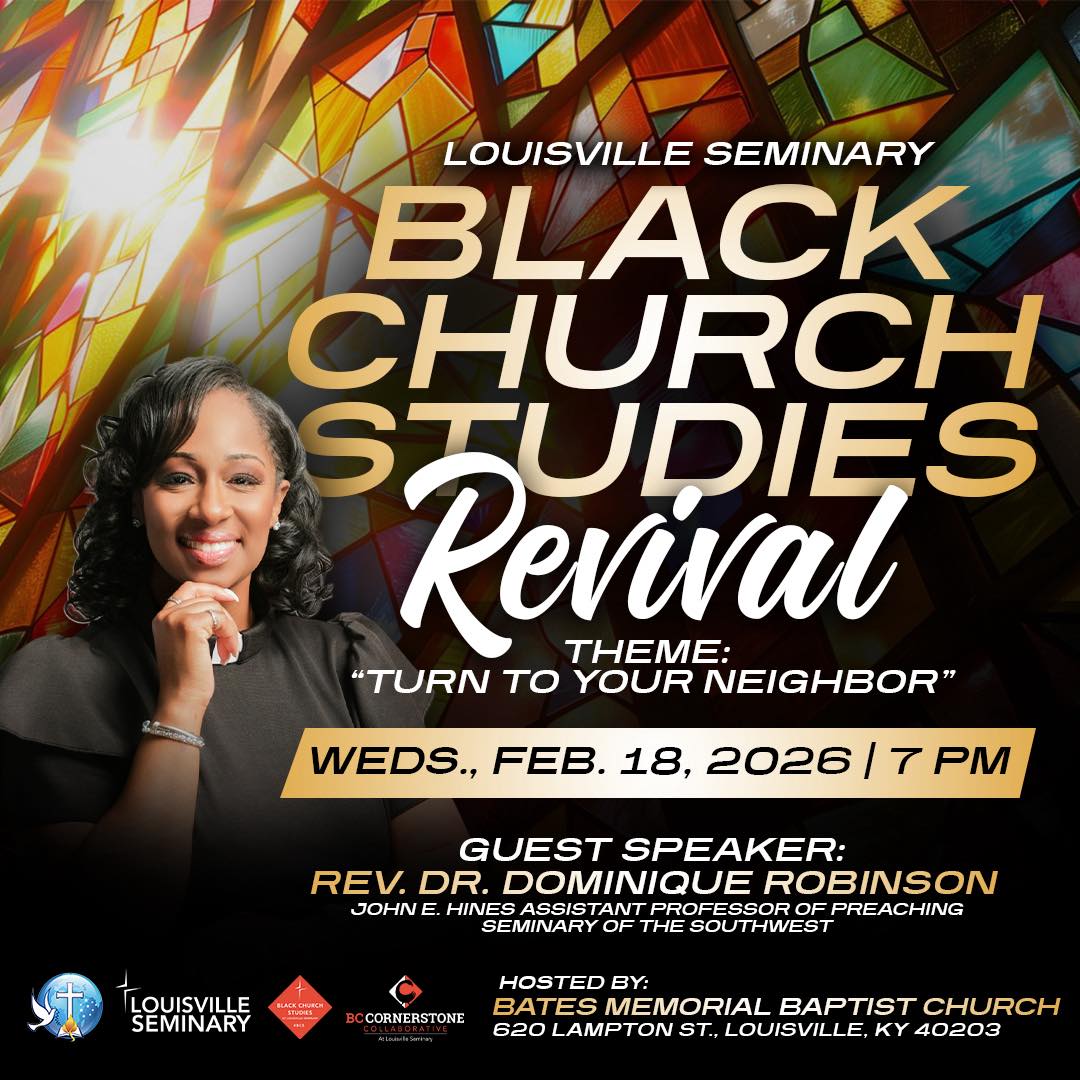 A night of truth, tradition, and transformation. Join us for the Louisville Seminary Black Church Studies Revival as Rev. Dr. Dominique Robinson calls us back to community with the charge to turn to your neighbor.