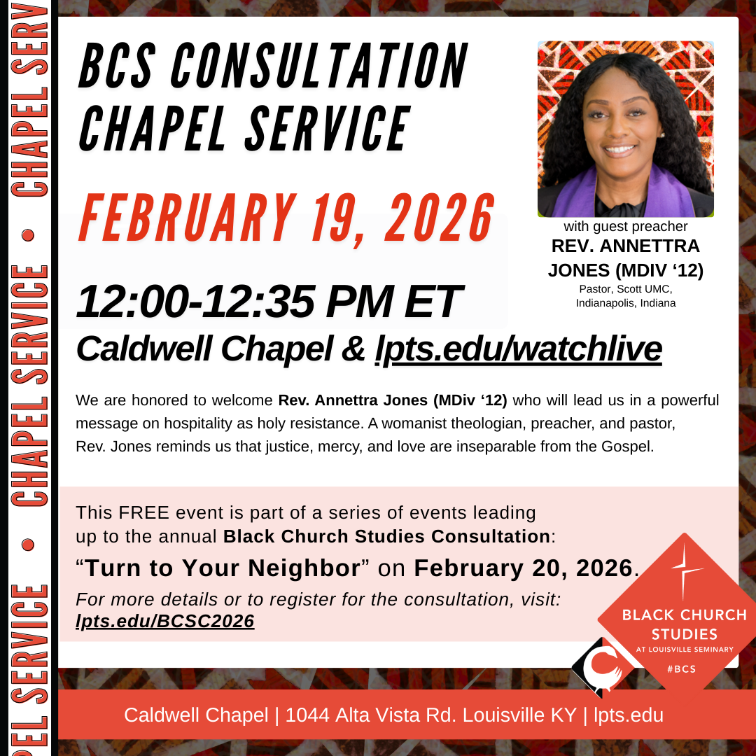 This community worship is part of a series of events leading up to the annual Black Church Studies Consultation: "Turn to Your Neighbor" on February 20, 2026. For more details or to register for the consultation, visit: lpts.edu/BCSC2026